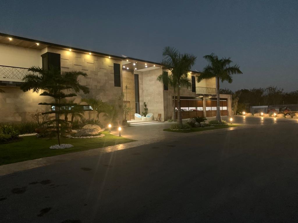 • Acabados de mármol travertino y muros exteriores.